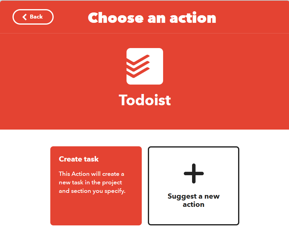 Once you pick the action (and if you pick Todoist), you’ll learn that the only thing you can do is to add a task!